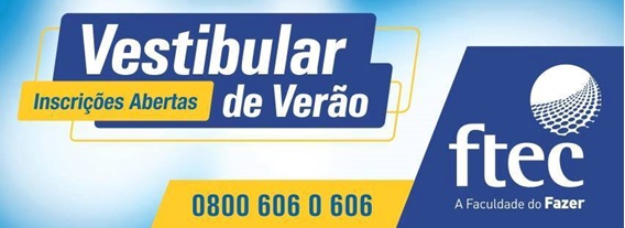 A Ftec Faculdades está com inscrições abertas para o Vestibular de Verão que será dia 14 de dezembro. Para quem quiser sair na frente, vai haver duas datas no chamado Vestibular Antecipado, 23 de novembro e 05 de dezembro. As provas de seleção irão ocorrer nas unidades de Bento Gonçalves, Caxias do Sul, Novo Hamburgo e Porto Alegre. A inscrição tem o valor de R$ 35,00 e pode ser feita até a véspera da data escolhida. O candidato precisa acessar o site www.vestibularftec.com.br ou www.ftec.com.br.